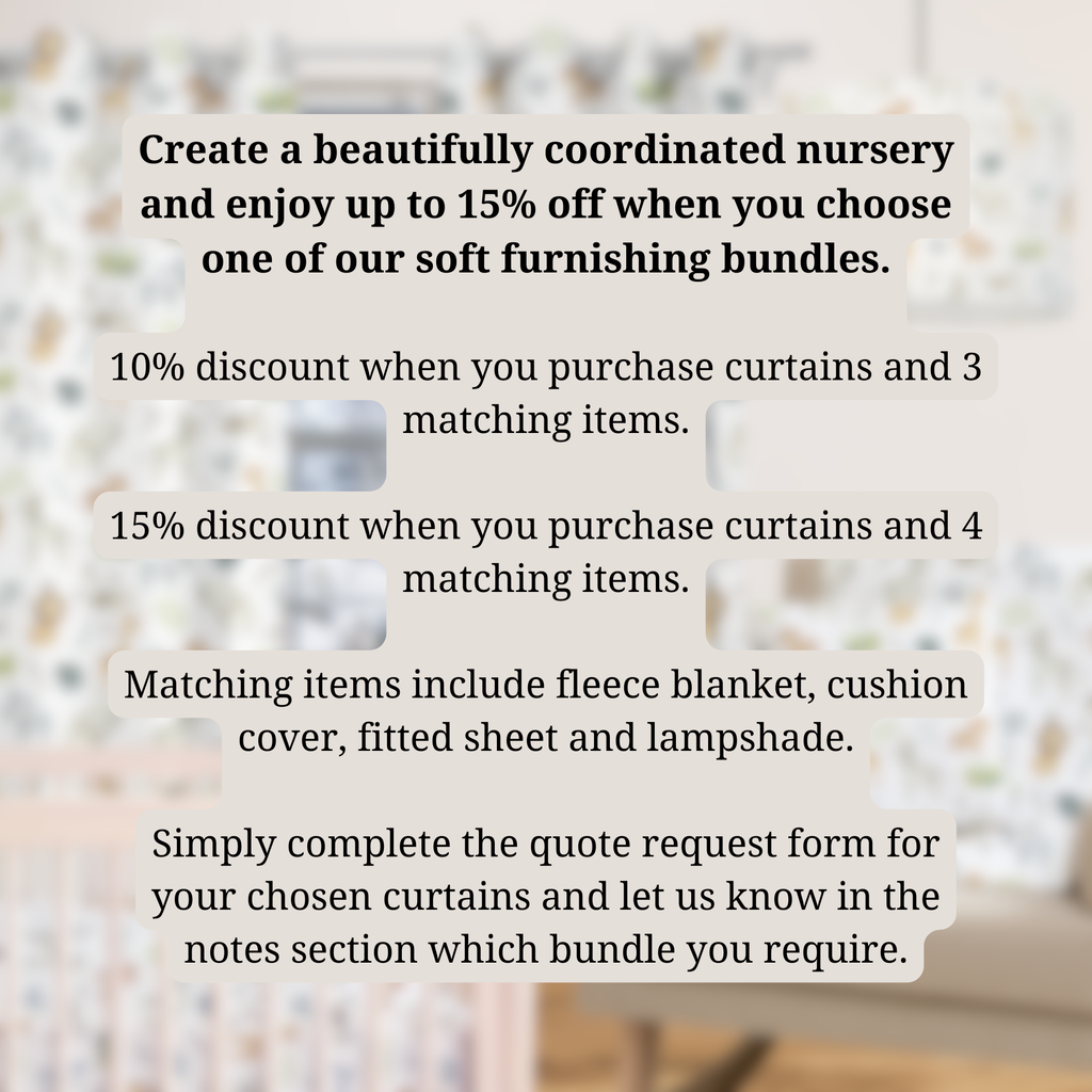 Blackout lined children's bedroom and nursery curtains featuring sweet safari baby animals on a white background.